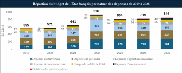 Source : budget.gouv.fr, « Budget de l’État par nature », consulté en octobre 2025