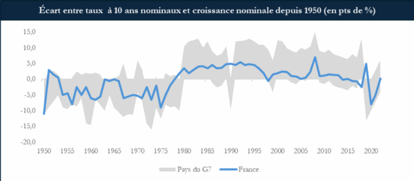 Source : Direction générale du Trésor, Étude Trésor-Éco, « Taux d’intérêt, croissance et soutenabilité de la dette publique », 17 octobre 2023