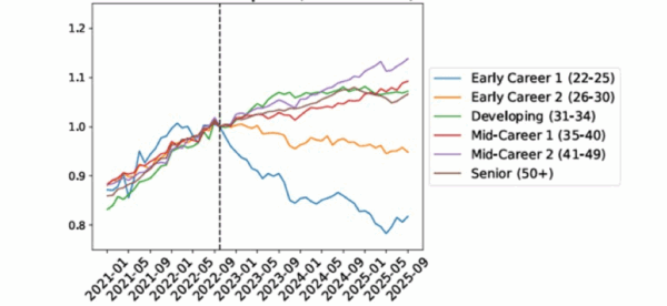 Source : « Canaries in the Coal Mine? Six Facts about the Recent Employment Effects of Artificial Intelligence », 26 Août 2025, STANFORD DIGITAL ECONOMY LAB